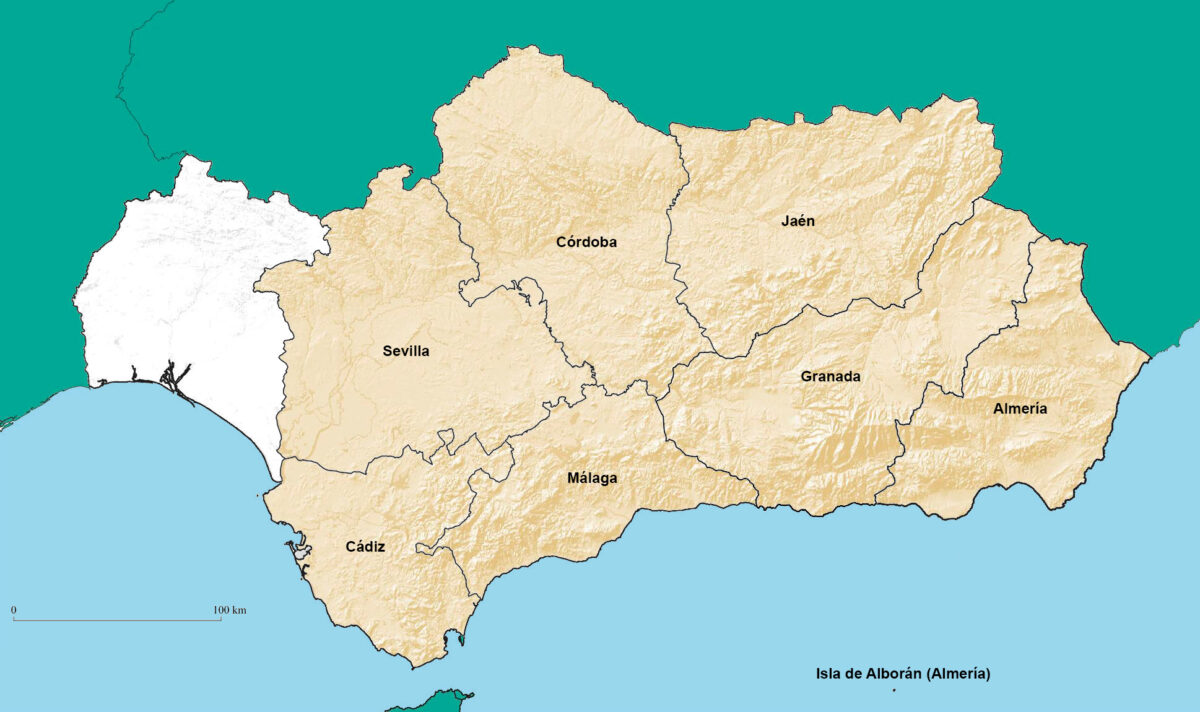 Almería, Cádiz, Córdoba, Granada, Jaén, Málaga, Sevilla