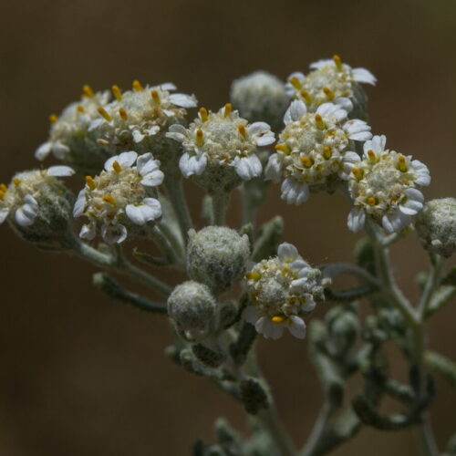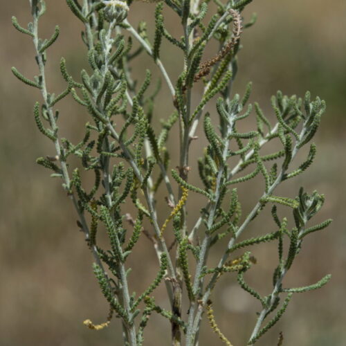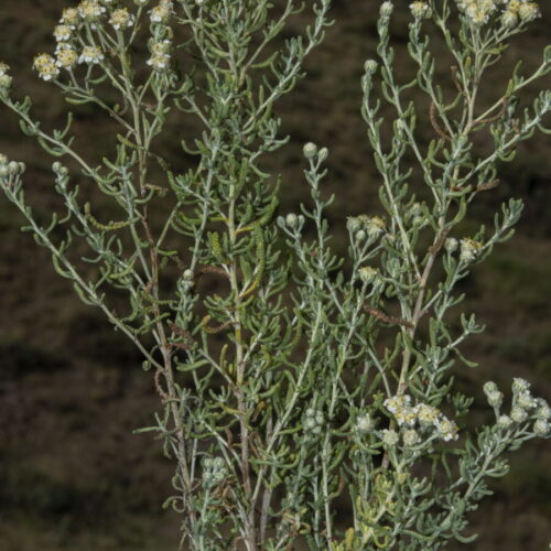 Mata leñosa, tomentosa. Tallos erectos, ramificados. Hojas 1–2,5 x 0,1–0,2 cm, alternas, lineares, pinnatipartidas o pinnatisectas, cilíndricas, con segmentos trilobados dispuestos en 4–5 filas. Capítulos 3,5–4 x 5–7 mm, radiados, en corimbos terminales laxos y paucifloros; brácteas involucrales coriáceas, aquilladas, tomentosas; receptáculo cónico, con brácteas interseminales parecidas a las involucrales. Flores amarillas, las externas hemiliguladas, femeninas, con limbo de 1–2 mm; las internas flosculosas, hermafroditas. Aquenios obovoideos, comprimidos, con 2 costillas laterales blanquecinas, sin vilano