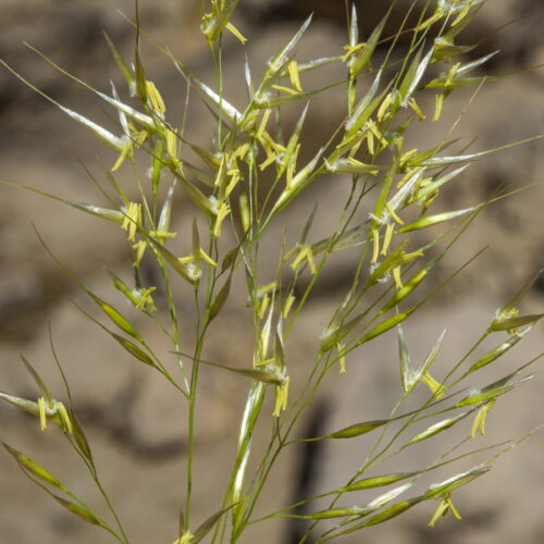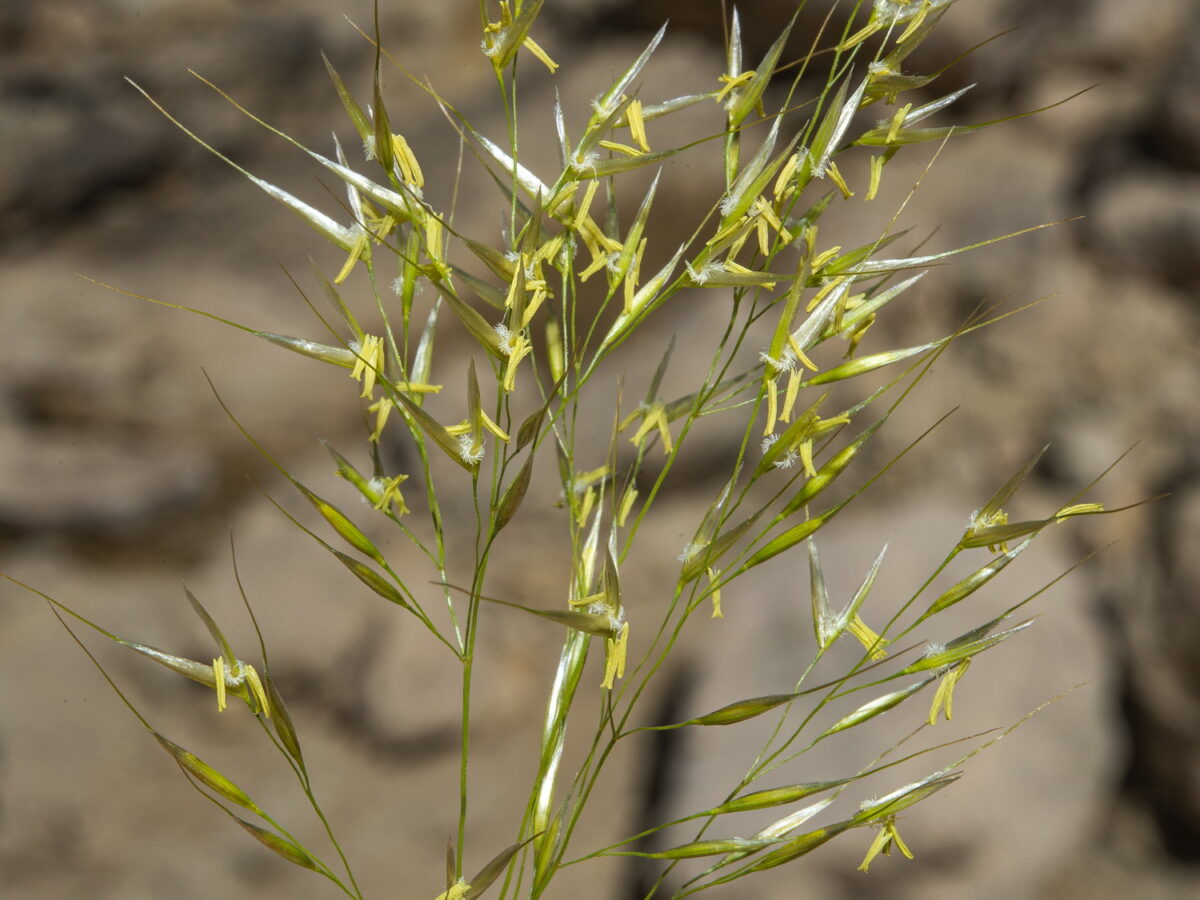 Estolonífera. Hojas de vaina frecuentemente escábrida, a veces glabra; lámina 7–40 cm, plana o convoluta, de haz escábrido y envés escábrido o glabro; lígula (0,2)0,4–0,9(1,1) mm, ciliada. Panícula 7–25 cm, laxa, amplia. Espiguillas hasta 2 cm, unifloras; glumas subiguales, agudas, escábridas, la superior 4,5–6,5(7,5) mm, la inferior (5,4)6–8 mm; callo 0,3–0,8(0,9) mm, de ápice agudo, pubescente; lema 2,9–4,7 mm, pubescente (pelos patentes), con 2 prolongaciones membranáceas en el ápice de 0,2–0,6(0,8) mm y arista de 0,6–1,7 cm, geniculada, escábrida en los ángulos; pálea 2,7–4,5 mm, binervada, de dorso glabro. Anteras hasta 3,5 mm; cariopsis hasta 3,7 mm, fusiforme