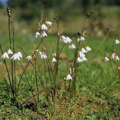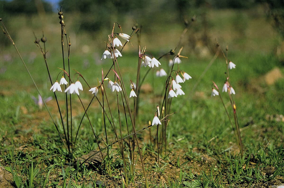 Bulbo 1–2 cm de diámetro, con túnicas papiráceas, las externas pardas. Escapos 1–2(5) por bulbo. Hojas (1)2–4(6), de 10–15 x 0,1–0,2 cm, filiformes, de base envainante, que aparecen al final o después de la floración. Inflorescencia en pseudoumbela con 1–2(3) flores; espata 1,3–2 x 0,1–0,2 cm, con una bráctea entera o de ápice bilobado, rara vez con dos brácteas estrechas y enteras, pardo–violáceas; pedicelos 0,5–4 cm. Flores actinomorfas, hermafroditas, trímeras, campanuladas; tépalos 6, de 0,7–1,2 x 0,2–0,5 cm, oblongo–elípticos, blancos con la base rosada, con 3–5 nervios, los externos de ápice trilobulado, con el lóbulo central más largo; estambres 6; ovario ínfero, con estilo filiforme. Cápsula 0,2–0,5 x 0,3–0,6 cm, más ancha que larga