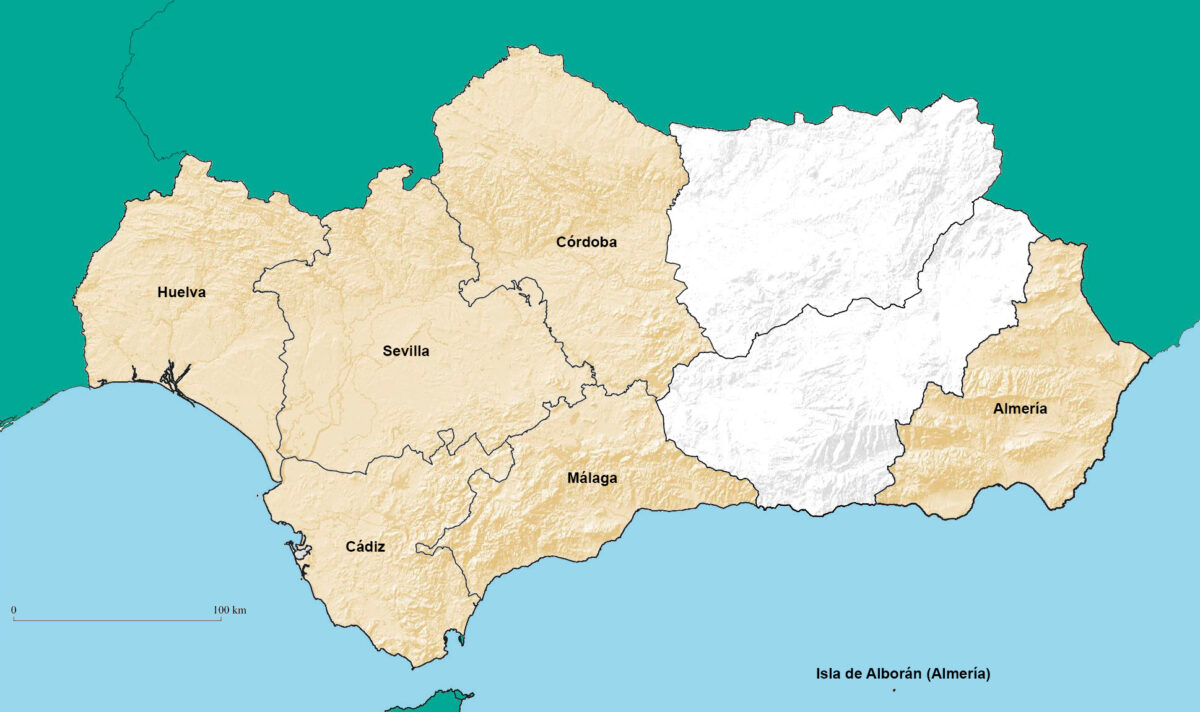 Almería, Cádiz, Córdoba, Huelva, Málaga, Sevilla
