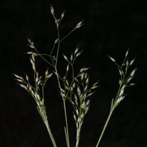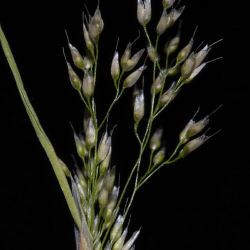 Lámina de las hojas 1–7,5 cm; lígula 2–5 mm. Panícula 1,2–8 cm, laxa. Espiguillas 1,8–2,3 mm, con 2 flores; pedúnculos 0,8–3,5 mm, de hasta el doble de la longitud de las espiguillas, con un anillo apical; glumas subiguales, escariosas, obtusas, con el borde dentado, a veces mucronadas; callo glabro; lema 2/3 de la longitud de las glumas, con arista de 1,6–2,5 mm, presente en ambas flores. Anteras c. 0,2 mm. Cariopsis c. 1 mm, parda