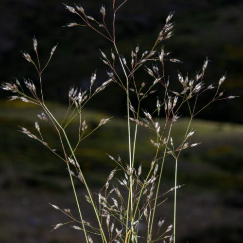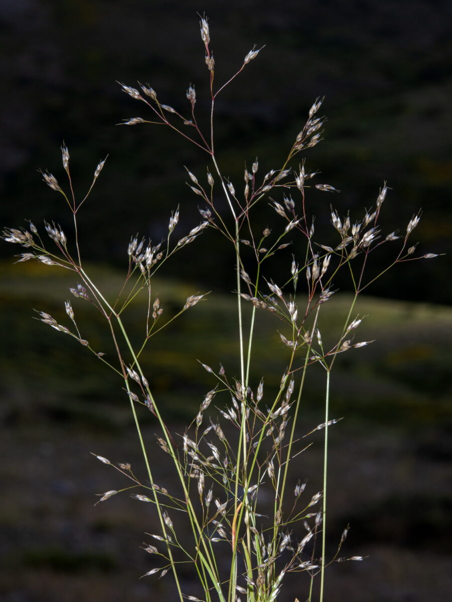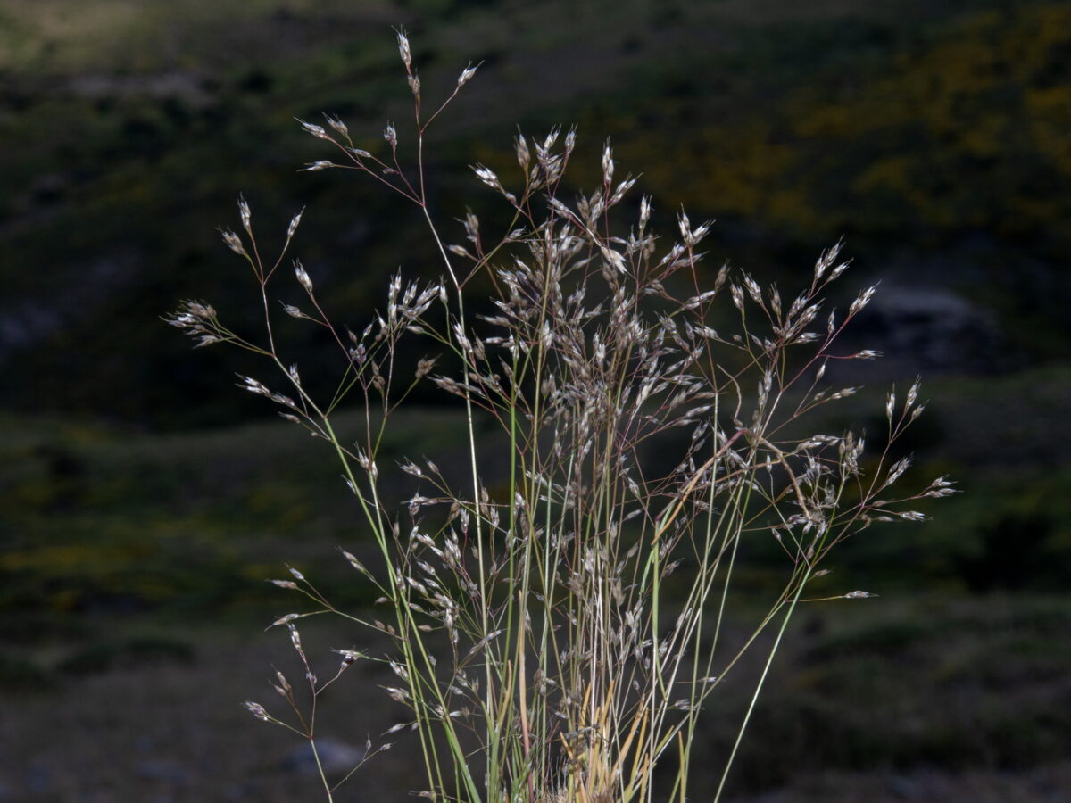 Lámina de las hojas 0,4–4,5 cm; lígula 2–4 mm. Panícula 2–9 cm, laxa. Espiguillas c. 2,7 mm, con 2 flores; pedúnculos más largos de las espiguillas < 5 mm, claviformes; glumas subiguales, agudas y escariosas; callo con un anillo de pelos de c. 0,3 mm; lema ¾ de la longitud de las glumas, con arista de 3–3,7 mm, presente en ambas flores. Anteras 0,3–0,4 mm. Cariopsis 1,5 mm, pardo oscura