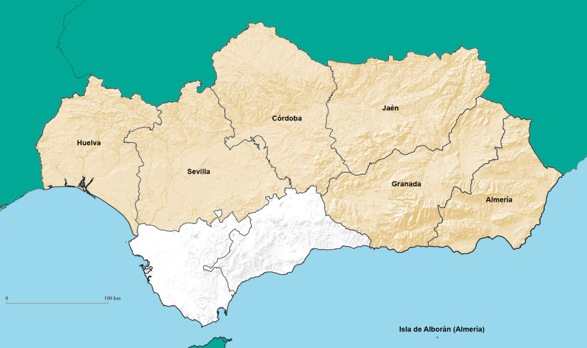 Almería, Córdoba, Granada, Huelva, Jaén, Sevilla