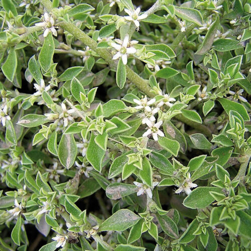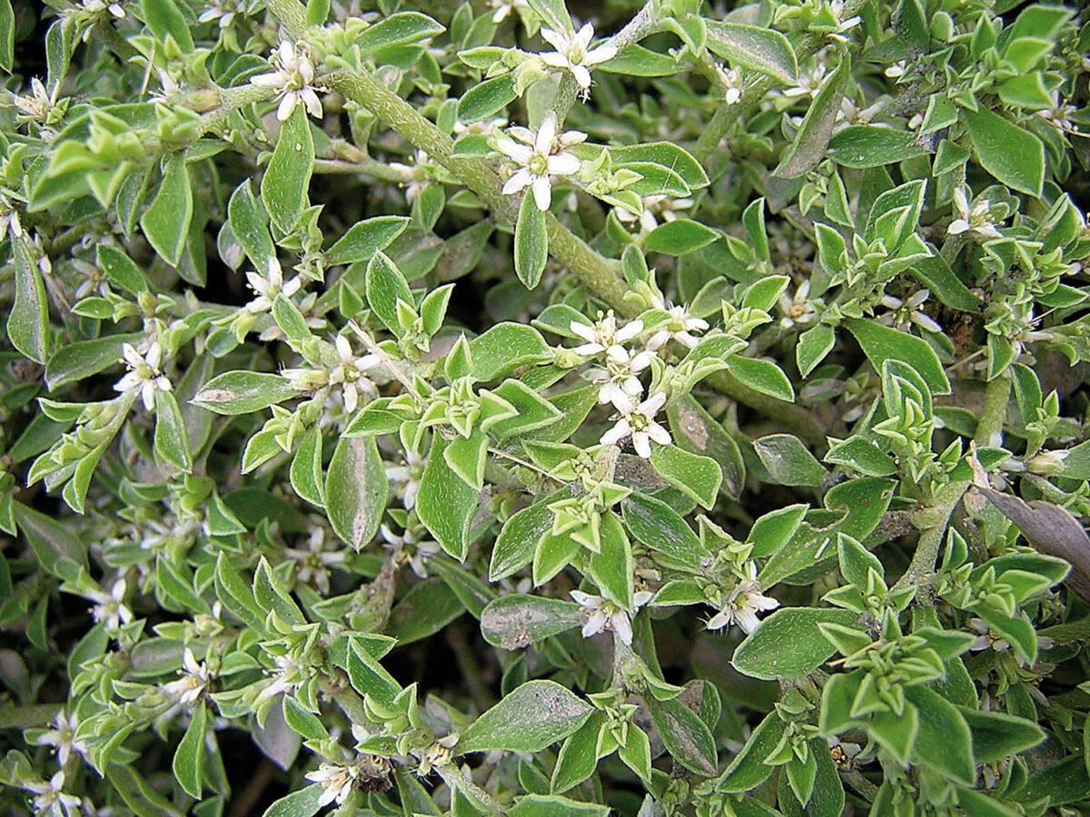 Tallos postrados, glaucos, los jóvenes densamente cubiertos de pelos adpresos y de escamas de hasta 2 mm. Hojas hasta 18 x 9 mm, alternas o en fascículos axilares, anchamente oblanceoladas o espatuladas, agudas o subobtusas, con pelos y escamas semejantes a las de los tallos, algo carnosas. Flores actinomorfas, hermafroditas, pentámeras, solitarias o en grupos de 2–5, en cortas ramas laterales, subsésiles. Tépalos 2–3 mm, soldados en la base, de márgenes membranáceos y de dorso peloso en la zona media, de color amarillo pálido o verdoso. Estambres 8–10 reunidos por parejas alternitépalas. Ovario súpero, con un rudimento seminal por lóculo. Fruto (cápsula loculicida) persistente, incluida en el perianto