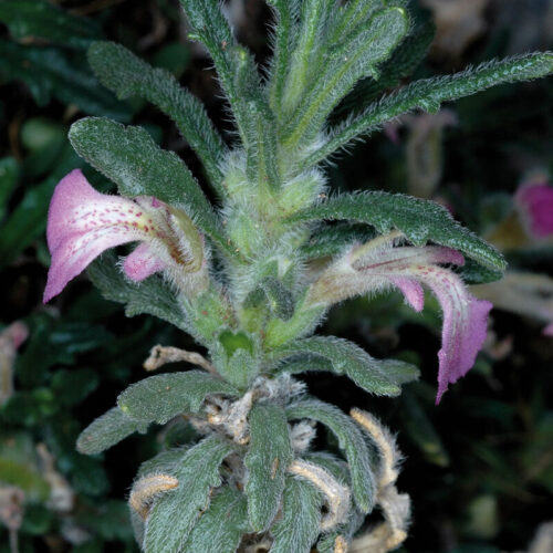Tallos blanquecino–grisáceos, vilosos o tomentosos. Hojas 14–35 x 3–6 mm, oblongas, oblongo–lineares u oblongo–espatuladas, obtusas, enteras, dentadas o lobuladas en el tercio superior, rara vez desde la mitad, planas o revolutas. Inflorescencia en verticilastros de 2–4 flores, con brácteas foliáceas. Flores zigomorfas, hermafroditas, pentámeras, sésiles. Cáliz 3,5–4,5 mm, con 5 dientes subiguales, tan largos o más cortos que el tubo. Corola 12–20 mm, bilabiada, rosado-púrpurea, con el tubo exerto, labio superior muy reducido y labio inferior trilobado, con un anillo de pelos en el interior del tubo. Estambres didínamos, exertos