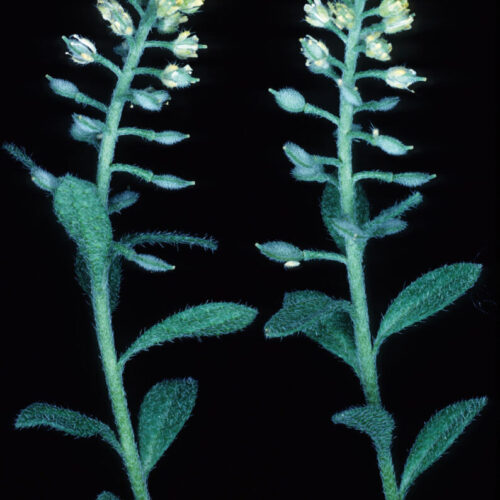Tallos ascendentes, a veces ramificados en la base, foliosos, con pelos estrellados, hírtulos. Hojas 7–22 x 3–7 mm, oblongo–espatuladas o elíptico–espatuladas, estrechadas en pecíolo corto, pubescentes, con pelos estrellados de 8–12(16) radios en el envés. Racimos densos, que se alargan mucho en la fructificación. Flores actinomorfas, hermafroditas, tetrámeras; sépalos amarillentos, pelosos, prontamente caducos; pétalos 2,1–3 mm, emarginados, amarillos; estambres 6, tetradínamos, los laterales con apéndice bidentado o entero soldado a la parte media del filamento; ovario hírtulo, con 2 primordios seminales por lóculo. Frutos en silícula latisepta, de 3–5(6) x 3–5(6) mm, suborbiculares, hírtulos, con numerosos pelos estrellados, los marginales no aplicados; estilo 0,8–1 mm; pedicelos erecto–patentes o patentes, hírtulos. Semillas 1–2 por lóculo