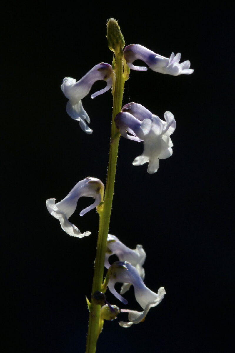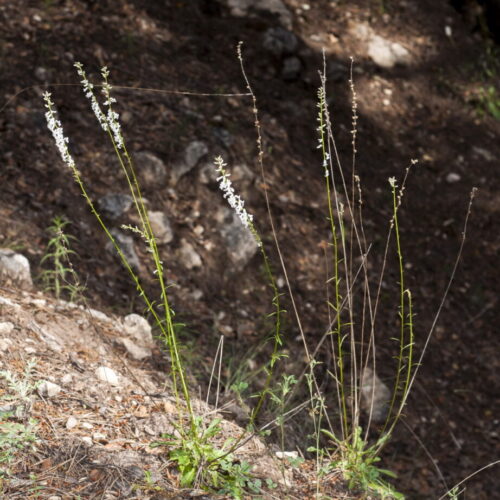 Bienal o perenne, glabra o ligeramente papilosa, con tallos erectos, simples, gráciles. Hojas basales arrosetadas, de espatuladas a obovado–lanceoladas, dentadas o crenado–dentadas; las caulinares alternas, laxamente dispuestas, enteras o palmatisectas, con 1–3 segmentos lineares. Inflorescencia en racimo terminal, bracteada, simple, rara vez ramificada, laxa; pedicelos 1,5–2,5(3) mm. Flores zigomorfas, hermafroditas, pentámeras. Cáliz 0,9–2,2 mm, con lóbulos de 0,4–0,9 mm de anchura, oblongo–elípticos u ovado–oblongos, obtusos, apiculados o mucronados. Corola (4)4,5–7 mm, bilabiada, con espolón incurvo de 0,6–1,9 mm, blanquecina, a veces teñida de azul–violeta. Estambres 4, inclusos. Cápsula (2,5)3–4 mm, globosa, que se abre por poros. Semillas 0,5–0,6 mm, equinuladas, parduscas