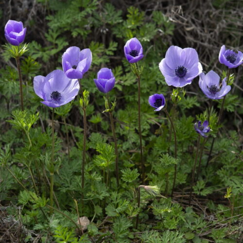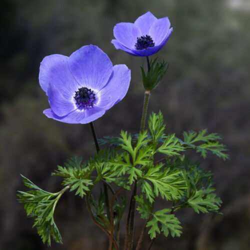 Rizoma tuberoso, irregular. Tallo escapiforme, simple y pubescente. Hojas inferiores largamente pecioladas, ovadas, profundamente divididas en lóbulos oblongos; las caulinares sésiles, bracteiformes, unidas por la base, profundamente hendidas en lóbulos lineares. Flores 4–7 cm de diámetro, solitarias, actinomorfas, hermafroditas; piezas periánticas 5–7, obovadas, azuladas, con la parte externa serícea; estambres numerosos, azules; gineceo apocárpico, súpero. Fruto poliaquenio, espiciforme, denso, lanoso; aquenios con pico corto, glabro y violáceo