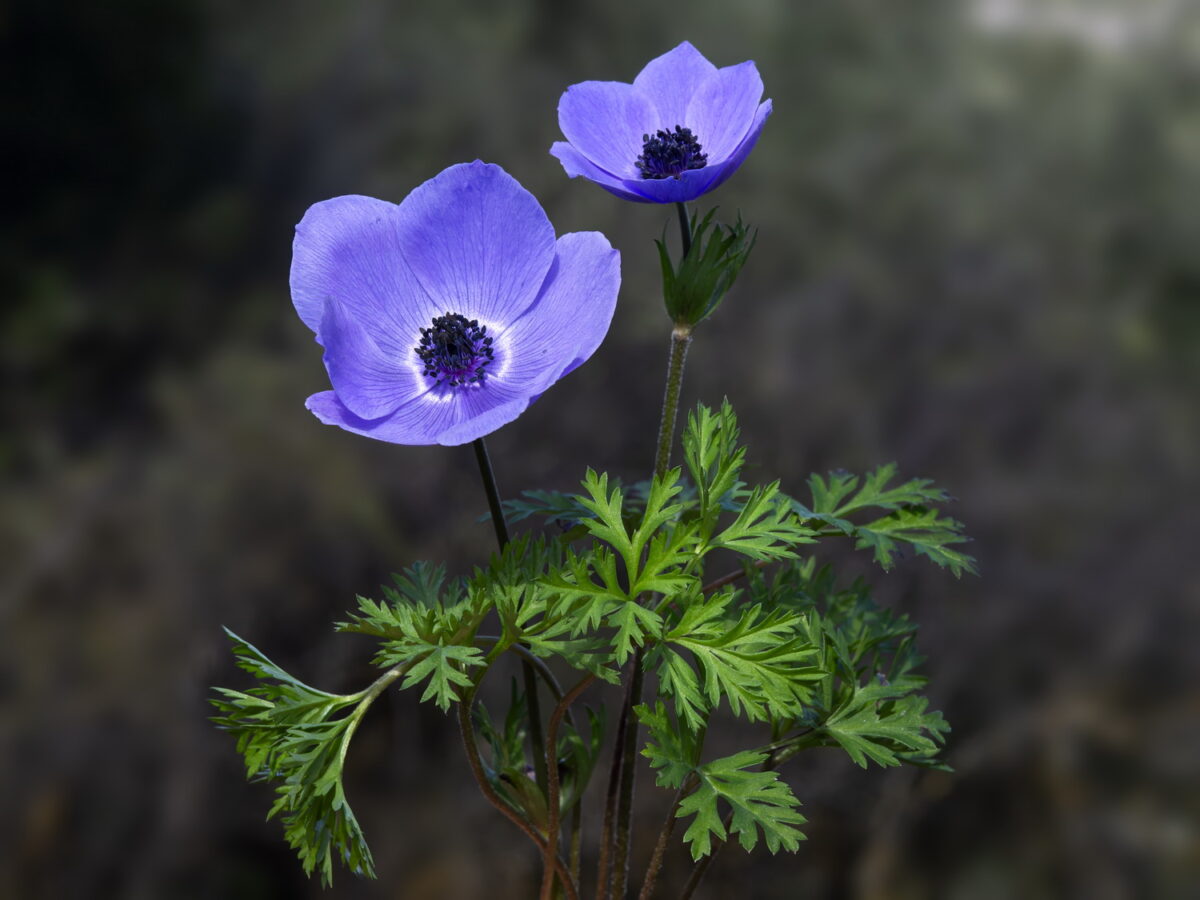 Rizoma tuberoso, irregular. Tallo escapiforme, simple y pubescente. Hojas inferiores largamente pecioladas, ovadas, profundamente divididas en lóbulos oblongos; las caulinares sésiles, bracteiformes, unidas por la base, profundamente hendidas en lóbulos lineares. Flores 4–7 cm de diámetro, solitarias, actinomorfas, hermafroditas; piezas periánticas 5–7, obovadas, azuladas, con la parte externa serícea; estambres numerosos, azules; gineceo apocárpico, súpero. Fruto poliaquenio, espiciforme, denso, lanoso; aquenios con pico corto, glabro y violáceo