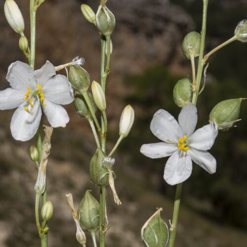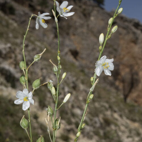 Rizoma fibroso, con raíces engrosadas, tuberiformes. Hojas 8–15, de 10–30 x 0,2–0,6 cm, basales, simples, lineares, paralelinervias, enteras, con vaina membranácea. Inflorescencias 1–3, en racimo bracteado laxo, con 10–15 nudos cada uno con 2–3 flores actinomorfas, hermafroditas, trímeras. Brácteas 2–4 mm en la antesis, alargándose en la fructificación, lanceoladas, escariosas. Pedicelos 7–11 mm, articulados en la base. Tépalos 6, de 15–20 x 6–8 mm, oblongo–elípticos, blancos, con 3(5) nervios verdosos o pardos en la madurez. Estambres 6, de longitud 1/2 a 2/3 de la de los tépalos. Ovario súpero; estigma incurvado en la fructificación, capitado. Cápsula de ápice agudo