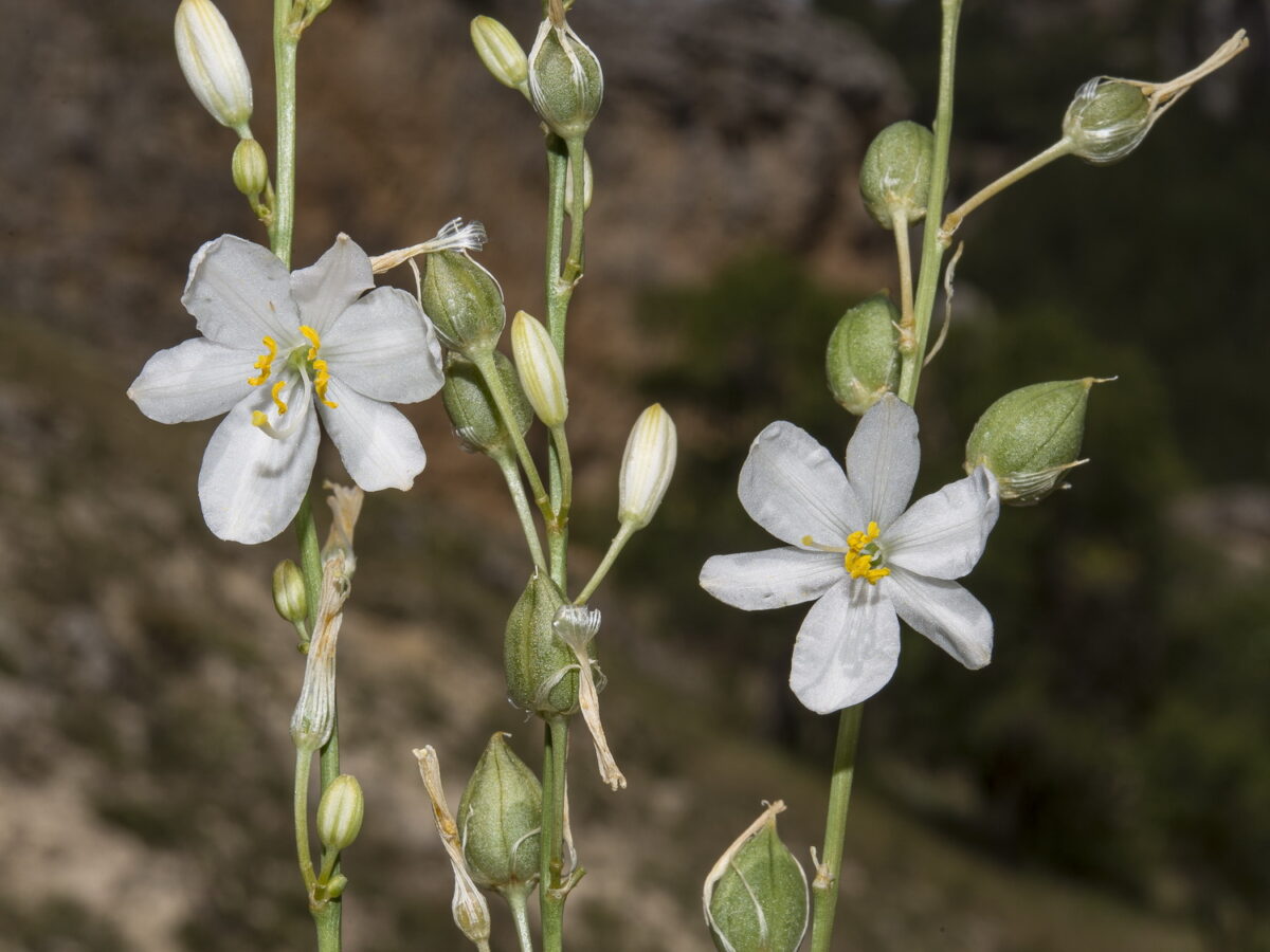 Rizoma fibroso, con raíces engrosadas, tuberiformes. Hojas 8–15, de 10–30 x 0,2–0,6 cm, basales, simples, lineares, paralelinervias, enteras, con vaina membranácea. Inflorescencias 1–3, en racimo bracteado laxo, con 10–15 nudos cada uno con 2–3 flores actinomorfas, hermafroditas, trímeras. Brácteas 2–4 mm en la antesis, alargándose en la fructificación, lanceoladas, escariosas. Pedicelos 7–11 mm, articulados en la base. Tépalos 6, de 15–20 x 6–8 mm, oblongo–elípticos, blancos, con 3(5) nervios verdosos o pardos en la madurez. Estambres 6, de longitud 1/2 a 2/3 de la de los tépalos. Ovario súpero; estigma incurvado en la fructificación, capitado. Cápsula de ápice agudo