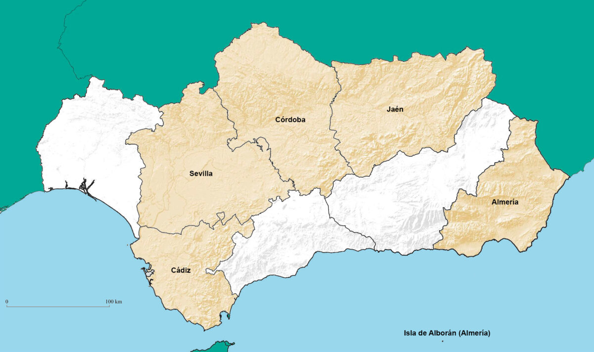 Almería, Cádiz, Córdoba, Jaén, Sevilla