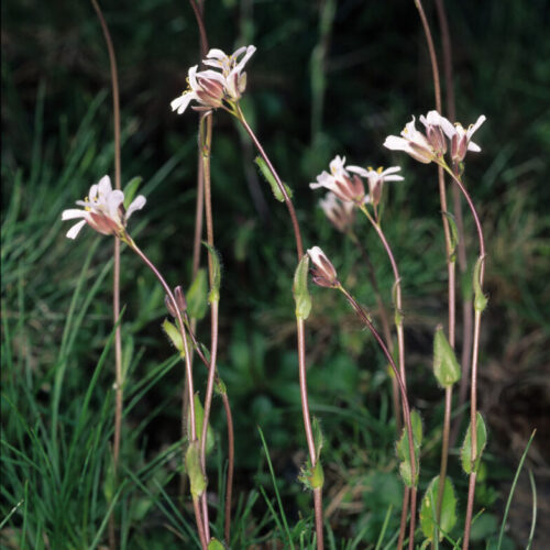 Uno o varios tallos erectos o ascendentes, glabrescentes, con pelos simples, mezclados con pelos bífidos y trífidos en la parte inferior. Hojas basales 1,8–4,5 cm, elípticas u oblanceoladas, gradualmente estrechadas en el pecíolo; hojas caulinares 2–3(5), sésiles, ligeramente auriculadas, ovado–lanceoladas o lanceoladas, subenteras, con margen ciliado y limbo subglabro. Racimo ebracteado, corimbiforme, que se alarga en la fructificación. Flores actinomorfas, hermafroditas, tetrámeras; sépalos 3–4 mm, algo gibosos en la base, púrpureos, glabros; pétalos 5–7 mm, blancos o blanco–rosados; estambres 6, tetradínamos; ovario súpero, con numerosos primordios por lóculo. Frutos en silicua, de 20–30 mm, lineares, erectos, no aplicadas al raquis; pedicelos erectos