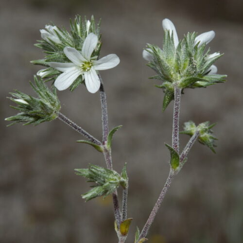 Cepa leñosa muy ramificada. Tallos ramificados, ascendentes, gráciles, los floridos con entrenudos más largos que las hojas, pubescente-vellosos. Hojas 2–4 x 0,5–1,5 mm, opuestas, connadas, imbricadas, ovadas u oblongo–lanceoladas, subobtusas, trinervadas, con los nervios marginales formando un reborde grueso, vellosas en el ápice, ciliadas en la base. Brácteas vellosas o flocos-tomentosas. Flores en glomérulos de 3–10, axilares o terminales, sobre largos pedúnculos, actinomorfas, hermafroditas, pentámeras. Sépalos 4–6 mm, ovado–lanceolados, sin mucrón, con ancho margen escarioso ciliado, glabros, pubescentes o flocoso–lanuginosos. Pétalos más largos que los sépalos, enteros, blancos. Estilos 3. Cápsula ligeramente exerta, ovoidea, con 6 dientes. Semillas reniformes, tuberculadas, negras