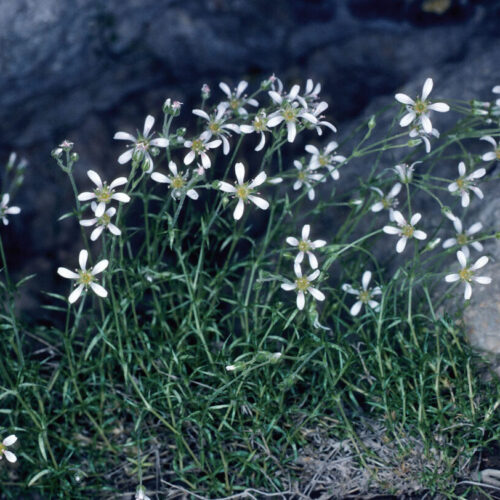 Planta pubescente en la base, pubescente–glandulosa en la parte superior. Tallos ramificados, ascendentes. Hojas 5–12 x 1–1,3 mm, opuestas, con fascículos axilares, linear–lanceoladas, subuladas, subaristadas, trinervadas, con los nervios marginales formando un reborde grueso, pubescentes. Dicasios laxos, a veces flores solitarias; pedicelos hasta 50 mm en la fructificación. Flores actinomorfas, hermafroditas, pentámeras. Sépalos 3–6 mm, ovado–lanceolados, mucronados, uninervados, con ancho margen escarioso, ciliados en la base. Pétalos más largos que los sépalos, enteros, blancos. Estilos 3. Cápsula exerta, ovoidea, con 6 dientes. Semillas reniformes, reticuladas, negras