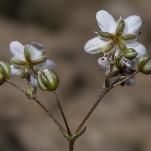 Planta glabra. Tallos simples o ramificados, rojizos. Hojas 5–15 x 0,5–1,5 mm, las basales formando una roseta densa, las caulinares opuestas, lineares o linear–lanceoladas, obtusas, algo crasas, uninervadas, ciliadas en la base. Cimas de dicasios compuestos; pedicelos hasta 25 mm en la fructificación, filiformes, rojizos. Flores actinomorfas, hermafroditas, pentámeras. Sépalos 2–3 mm, ovales, cuculados, obtusos, uninervados, con nerviación inconspicua y ancho margen escarioso ciliado en la base. Pétalos más largos que los sépalos, enteros, blancos. Estilos 3. Cápsula netamente más larga que los sépalos, subglobosa, con 6 dientes. Semillas subreniformes, angulosas, tuberculado–papilosas, negras