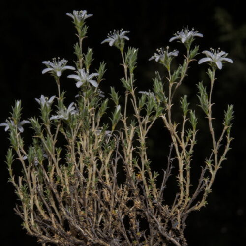 Cepa leñosa gruesa, ramificada. Tallos ramificados, ascendentes o erectos, con entrenudos largos, pubescentes. Hojas 3–6 x 0,5–1,3 mm, opuestas, connadas, linear–lanceoladas u ovado–lanceoladas, subaristadas, trinervadas, con los nervios marginales formando un reborde grueso, arqueadas, glabrescentes, ciliadas en la base. Flores solitarias o en grupos de 2–5, axilares y terminales, formando inflorescencias racemiformes, actinomorfas, hermafroditas, pentámeras. Sépalos 4–8 mm, ovado–lanceolados, agudos, mucronados, rígidos, con margen escarioso ciliado, glabros o pubescentes. Pétalos más largos que los sépalos, enteros, blancos. Estilos 3. Cápsula ligeramente exerta, oblongoidea, con 6 dientes. Semillas reniformes, reticuladas, negras