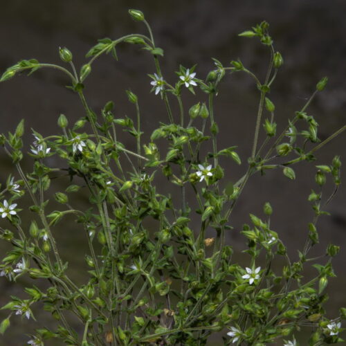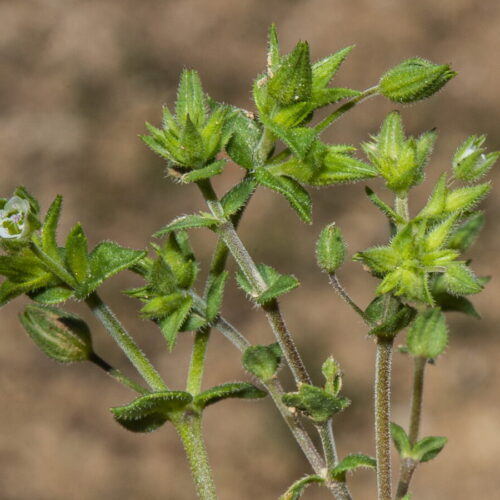Tallos simples o ramificados, pubescentes, con pelos retrorsos. Hojas 4–6 x 2–3,5 mm, opuestas, ovadas o elípticas, agudas, trinervadas, con nervios gruesos ramificados, pubescentes, con margen ciliado, las basales subespatuladas. Cimas de dicasios compuestos; pedicelos hasta 10 mm en la fructificación, pubescentes con escasos pelos glandulíferos. Flores actinomorfas, hermafroditas, pentámeras. Sépalos 3–4,5 mm, ovado–lanceolados, agudos, trinervados, con nerviación prominente, los internos con ancho margen escarioso, pubescentes con escasos pelos glandulíferos. Pétalos de longitud 1/2 de la de los sépalos, enteros, blancos. Estilos 3. Cápsula exerta, ovoidea, con 6 dientes. Semillas reniformes, tuberculadas, negras