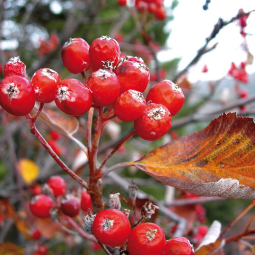 Árbol caducifolio, con yemas algo viscosas y cubiertas de abundantes pelos. Hojas alternas, simples, ovadas, ovales o elípticas, doblemente aserradas, de envés blanco–tomentoso. Inflorescencias corimbiformes. Flores actinomorfas, hermafroditas, pentámeras; sépalos pequeños y triangulares, tomentosos; pétalos 6–7 mm, redondeados, unguiculados, blancos; estambres numerosos; ovario ínfero, con 2 estilos libres, algo pelosos en la base. Fruto en pomo, de 10–17 mm, subgloboso, rojo o anaranjado, con lenticelas
