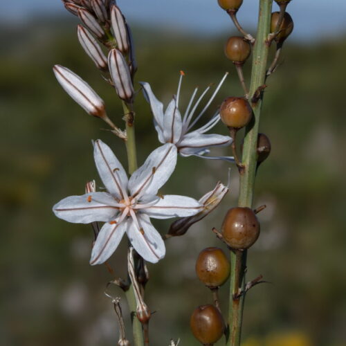 Rizoma corto y grueso, con abundantes restos fibrosos. Raíces con tubérculos fusiformes. Hojas 50–70 x 1–3 cm, dísticas, planas, aquilladas, verdes. Escapo ramificado en la parte superior, con 3–10 ramas erecto–patentes, generalmente simples. Brácteas 7–16 mm, ovadas u ovado–lanceoladas, acuminadas, con la parte central pardo oscura y margen blanquecino. Pedicelos 8–15 mm, erectos o algo curvados, articulados hacia la mitad. Flores actinomorfas, hermafroditas, trímeras. Tépalos 6, de 15–20 x 4–9 mm. Estambres 6, algo más cortos que los tépalos. Ovario súpero. Cápsula 8–12 x 7–10 mm, ovoidea, ovoideo–elipsoidea o elipsoidea, con la parte superior estrechada, de ápice truncado y ligeramente umbilicado, con 5–11 nervios transversales. Semillas 6–8 x 3–4 mm, grises