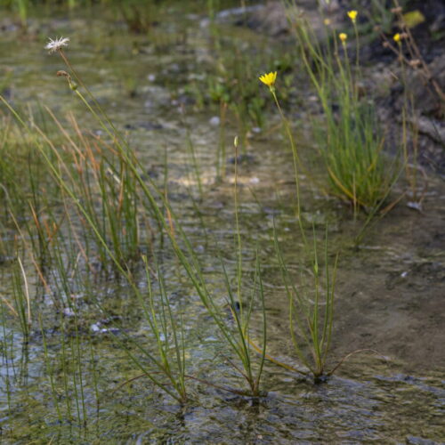 Perennes, gIabras excepto en la base del involucro y brácteas involucrales, con rizoma subterráneo de hasta 25 cm, articulado, fistuloso, del que parten numerosas raíces fibrosas adventicias. Tallos ascendentes, simples o bifurcados, estriados, fistulosos, con hojas en la mitad inferior. Hojas inferiores de 10-30 x 0,2-0,5 cm, fistulosas. estriadas, subuladas; las más superiores bracteiformes. Pedúnculos no engrosados. Involucro de 11-14 x 5-8 mm en antesis y de 15-18 x 8-10 mm en fructificación, viloso en la base, con varias filas de brácteas. Brácteas involucrales con margen escarioso ancho, vilosas en el ápice y nervio medio; las externas 1/2 de largas que las internas. Lígulas sobrepasando en 6-10 mm al involucro, amarillas con una línea purpúrea en el dorso. Aquenios de 5-6 mm, estrechamente elípticos, comprimidos lateralmente, con costillas lisas, negruzcas. Vilano de 7-10 mm, blanco