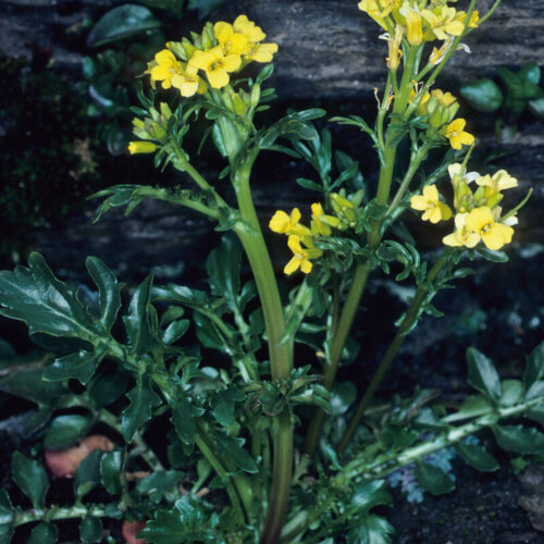 Uni o pluricaule; tallos erectos, estriados, simples o ramificados, con pelos simples. Hojas basales (1,3)5–15 cm, arrosetadas, lirado–pinnatisectas, con (2)6–7 pares de segmentos laterales pequeños, a veces reducidas al segmento terminal de 12–28 x 10–25 mm, ovado–orbicular u ovado–oblongo; las caulinares 3–3,8 cm, alternas, auriculadas, sésiles, todas glabrescentes o pelosas en el margen y raquis. Racimos laxos, que se alargan en la fructificación. Flores actinomorfas, hermafroditas, tetrámeras; sépalos 3–4 mm, verdes, con borde membranáceo; pétalos 6–7 mm, obovados, amarillos; estambres 6, tetradínamos; ovario súpero, con numerosos primordios por lóculo. Frutos en silicua, de 60–75 x c. 2 mm, erectos o erecto–patentes, con el nervio medio de las valvas y el de la sutura prominentes, los secundarios anastomosados; pedicelos 4–5 mm, gruesos; estilo c. 1,2 mm. Semillas 1,8–2 mm, uniseriadas