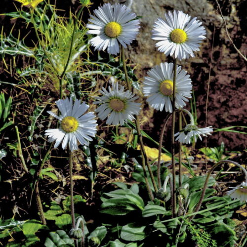 Vivaz, escaposa, vilosa. Escapos simples. Hojas rosuladas, pecioladas, obovadas, anchamente elípticas o a veces suborbiculares, crenadas o sinuadas, sublobadas, al menos algunas bruscamente adelgazadas en el pecíolo, a veces de envés purpúreo. Capítulos 20–40 mm de diámetro, radiados, solitarios, terminales; involucro 6–10 mm, con 2–3 filas de brácteas oblongo–obovadas, obtusas, vilosas. Flores externas 7–13 mm, hemiliguladas, femeninas, blancas, ± teñidas de púrpura; las internas 2–2,5 mm, flosculosas, hermafroditas, amarillas. Aquenios 1,5–2 mm, obovoideos, comprimidos, marginados, esparcidamente pubescentes; vilano 0,5–0,7 mm, de pequeñas escamas escariosas, subuladas, algo soldadas en la base