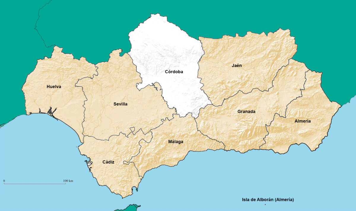 Almería, Cádiz, Granada, Huelva, Jaén, Málaga, Sevilla