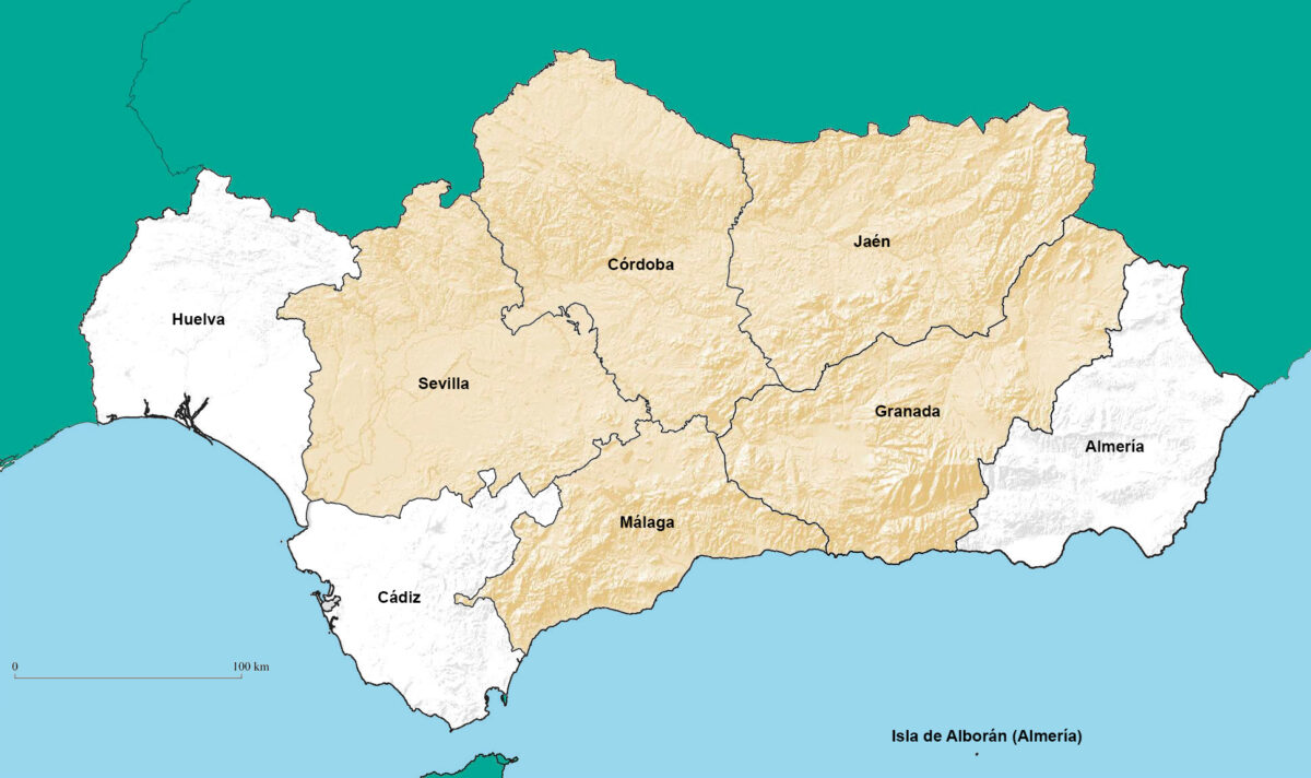 Córdoba, Granada, Jaén, Málaga, Sevilla