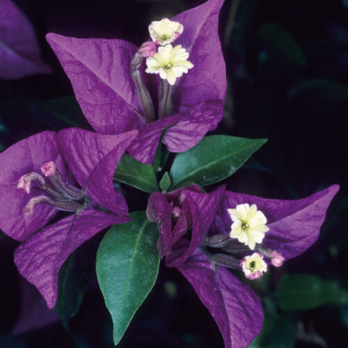 arbustos trepadores de hasta 10 m, perennifolios, ± espinosos, de hojas alternas, acuminadas, lanceoladas y de haz lustroso; flores 2–2,5 cm, tubulosas y rematadas en pequeña corona amarillenta o blanquecina, dispuestas de 3 en 3, cada una sujeta al nervio medio de una gran bráctea ovada coloreada de magenta, que constituye la parte más vistosa de la planta