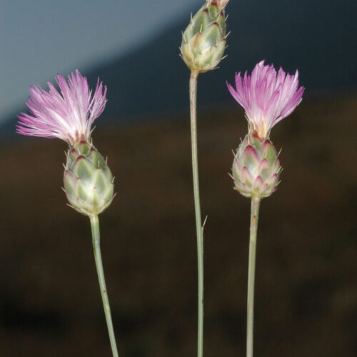 Anual, unicaule. Hojas basales pecioladas, de dentadas a pinnatisectas, pelosas; las superiores alternas, sésiles, lineares o linear–lanceoladas, dentadas, glabras. Capítulos terminales, solitarios, cortamente pedunculados; involucro 12–18 x 7–13 mm, ovoideo, con varias filas de brácteas imbricadas, coriáceas, las externas y medias ovadas, de ápice oscuro, terminado en una espina de 0,5–0,8 mm, erecta, persistente; receptáculo peloso. Flores flosculosas, purpúreas, las externas neutras. Aquenios c. 3,5 mm, oblongo–obovoideos, con corónula apical y costillas poco marcadas, los externos algo más cortos y sin vilano; vilano 3–3,5 mm, de varias filas de pelos paleáceos, denticulados