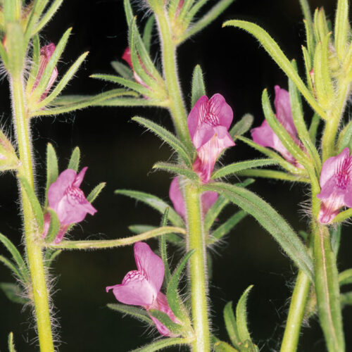 Anual, uni o multicaule, erecta, generalmente glabra en la parte inferior, ± glanduloso–pubescente en la inflorescencia. Tallos simples o poco ramificados. Hojas 10–55 x 2–9 mm, las inferiores opuestas, las superiores alternas, cortamente pecioladas, linear–lanceoladas, oblongas o elípticas, enteras. Racimo terminal, laxo, con 2–8 flores; brácteas 10–27 x 0,7–2,6 mm, lineares. Flores zigomorfas, hermafroditas, pentámeras, subsésiles; sépalos 12–20 x 0,5–1,6 mm, más largos que la corola, agudos, con largos pelos en el margen; corola 9–17 mm, personada, de base gibosa, rosada; estambres 4, inclusos; ovario bilocular. Cápsula 4–10 x 3–7 mm, poricida, ovoide, gibosa en la base, densamente glanduloso–pubescente. Semillas 0,9–1,1 mm, con la cara dorsal tuberculada y la ventral con una cresta marginal sinuo-sa y una cresta central continua o partida