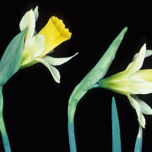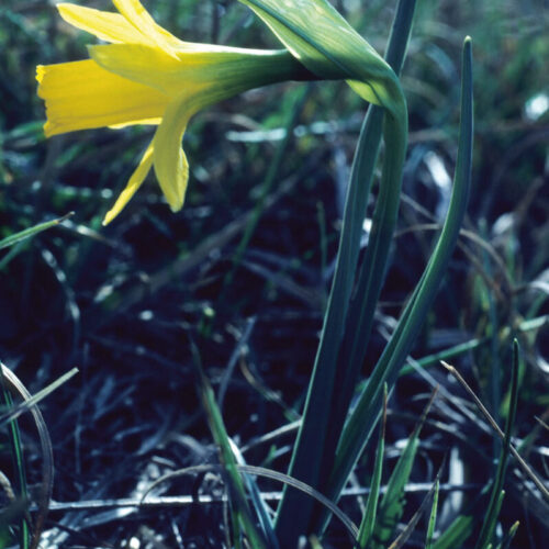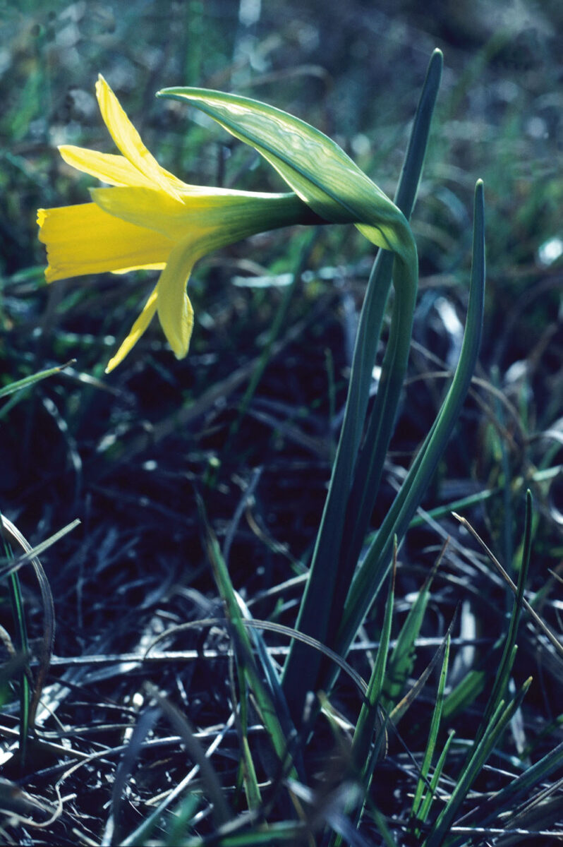Bulbo 2–3 x 2–3 cm, con túnicas pardas, que se prolongan sobre el escapo. Escapo 15–50 cm. Hojas 15–45 x 0,4–1,1 cm, más cortas que el escapo, con 4 quillas, obtusas, glaucas, la sección máxima de 4 mm de ancho, subcilíndrica. Espata 6–10 cm, membranácea, de márgenes soldados por debajo de la mitad, pardo clara. Pedicelos 4–9 cm, más cortos que la espata. Flores 1(2-3), patentes o ligeramente péndulas, actinomorfas, hermafroditas, trímeras, generalmente concoloras; tubo del perianto (1,3)1,5–1,8 cm, obcónico; tépalos 1,3–2 cm, erecto–patentes o erectos, de oblongos a ovado–lanceolados, mucronados, no retorcidos, de color amarillo pálido; corona 1,9–3 cm, de longitud igual o algo más larga que los tépalos, recta, con margen algo crenado y no recurvado, de color amarillo dorado. Estambres 6. Ovario ínfero. Fruto capsular, polispermo