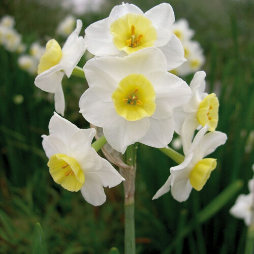 Bulbo 3–4 x 2–3,5 cm, con túnicas pardo negruzcas, que se prolongan sobre el escapo. Escapo 25–30 cm. Hojas 25–45 x 0,5–1,5 cm, generalmente más largas que el escapo, planas, obtusas. Espata 2–5 cm, membranácea, de márgenes soldados solo en la base. Pedicelos hasta 5 cm, generalmente más largos que la espata. Flores 6–10, actinomorfas, hermafroditas, trímeras; tubo del perianto 1,3–1,8 cm, recto; tépalos 1,3–1,8 cm, elípticos, los externos largamente mucronados, blancos o ligeramente teñidos de amarillo; corona 5–7,5 mm, de color amarillo dorado. Estambres 6. Ovario ínfero. Fruto capsular, polispermo