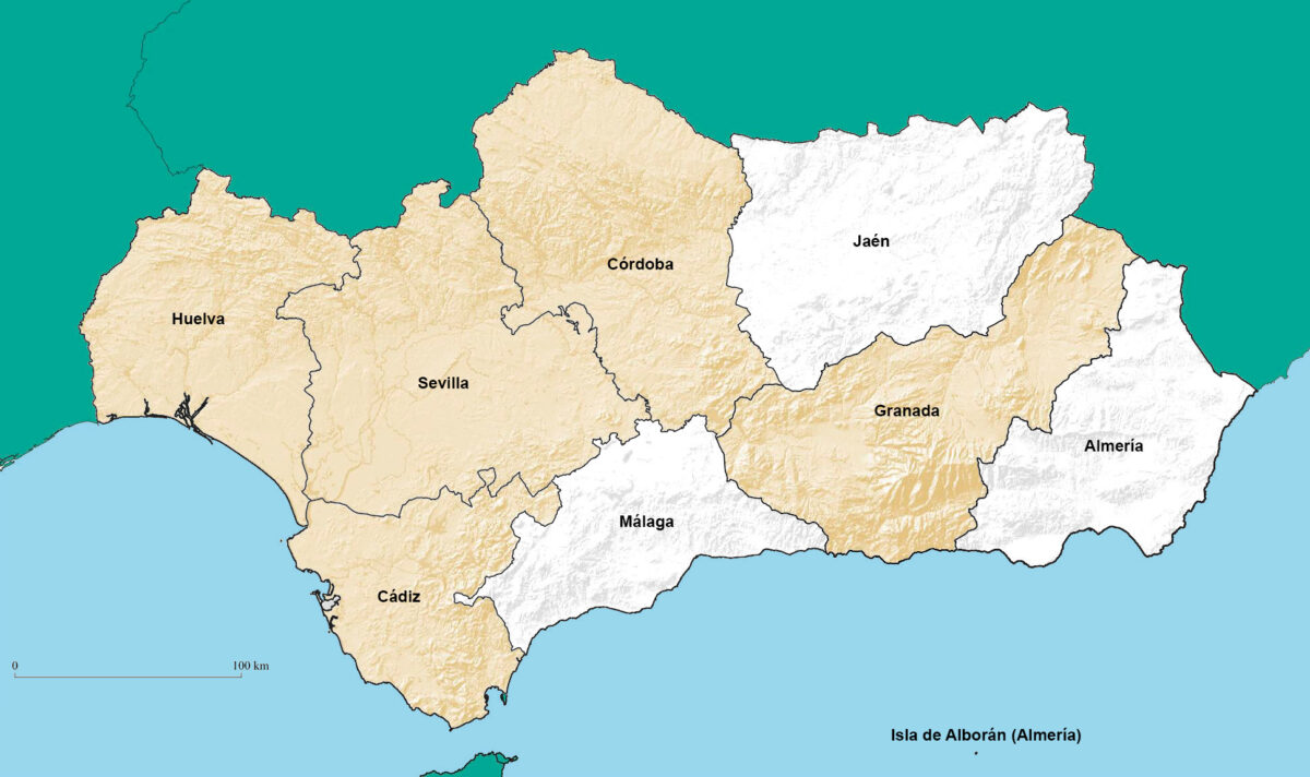 Cádiz, Córdoba, Granada, Huelva, Sevilla
