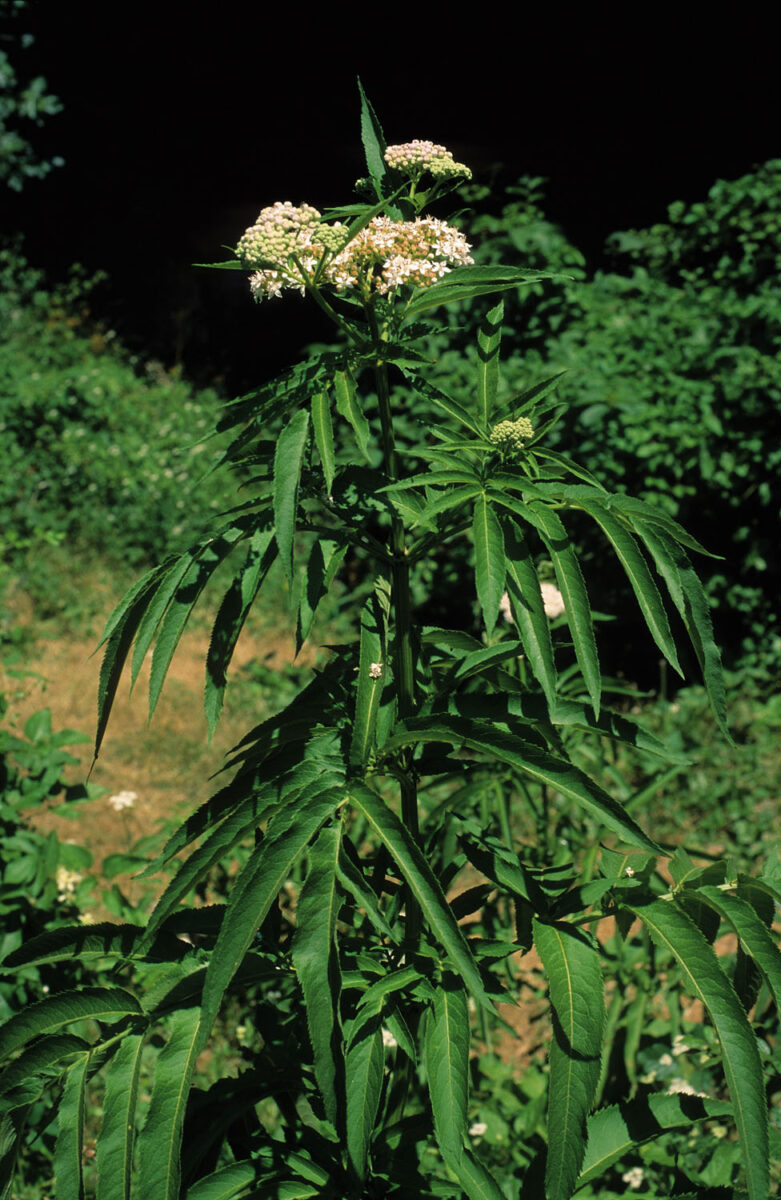 Hierba rizomatosa. Hojas opuestas, compuestas, imparipinnadas, a veces bipinnadas, con 7–11 folíolos de 4–17 x 1,3–5 cm, oblongo–lanceolados, lanceolados u ovado–lanceolados, finamente aserrados, acuminados, de envés algo peloso; estípulas desarrolladas, ovado–lanceoladas o lanceoladas, persistentes. Flores 6–9 mm de diámetro, actinomorfas, hermafroditas, pentámeras, dispuestas en cimas corimbiformes multifloras y terminales de hasta 15 cm de diámetro; corola rotácea, blanca; estambres 5, soldados a la corola, anteras purpúreas; ovario ínfero. Baya 2,5–4 mm, globosa, negra