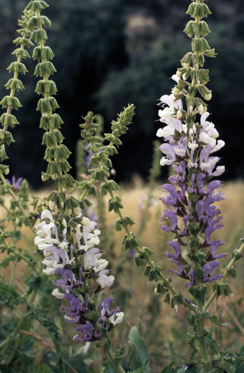 Subarbustos, más o menos densamente blanco-Ianados. Tallos ramificados. Hojas con pecíolo de 2-3 cm y limbo entero o con 2 lóbulos laterales muy pequeños y lóbulo central de hasta 8 x 3 cm, elíptico u oblongo-elíptico, crenulado, grisáceo por el haz y blanco-Ianado por el envés. Inflorescencia ramificada en la base. Verticilastros aproximados, con 4-8 flores. Brácteas de 10-12 mm, las inferiores aproximadamente tan largas como los cálices. Pedicelos de c. de 2 mm. Cáliz de 7-8 mm, tubuloso; dientes ovado-triangulares de c. de 1 mm, con pelos eglandulares sobre los nervios y glándulas sentadas o cortamente pediceladas. Corola de c. de 15 mm, azul-rosada con labio superior ligeramente curvado