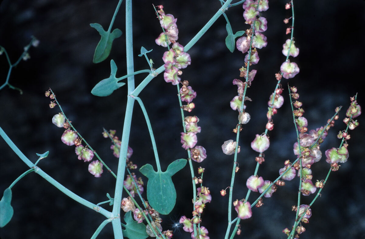 Polígama, rizomatosa, glabra, verde o glauca. Tallos numerosos, ramificados en la base, erectos. Hojas 8–35 x 7–28 mm, alternas, simples, hastadas o sagitadas, ovadas o suborbiculares, frecuentemente estrechadas por encima de los lóbulos basales, largamente pecioladas; lóbulos basales enteros, divergentes. Inflorescencia racemosa, poco ramificada, laxa. Flores actinomorfas, unisexuales o hermafroditas, homoclamídeas. Tépalos 6, verde–rosados; los 3 externos libres o cortamente soldados en la base, adpresos a las valvas en la fructificación, los internos libres, transformándose en 3 valvas que envuelven al fruto. Estambres 6; anteras 1,5–2(2,5) mm. Ovario súpero. Fruto aquenio, con valvas de 3,2–5,5 x 3–4,5 mm, ovadas, a veces rosadas