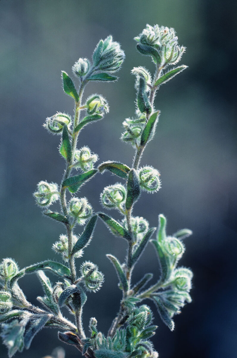 Uni o multicaule, grácil, con indumento simple de setas rígidas con base tuberculada. Tallo simple o poco ramificado. Hojas caulinares hasta 20 x 2 mm, estrechamente oblanceoladas o lineares, generalmente plegadas. Inflorescencia generalmente más larga que el resto del tallo y laxa en la fructificación; brácteas hasta 5,5 x 1,5 mm, lineares o anchamente ovadas en la fructificación; pedicelos más cortos que el cáliz. Flores actinomorfas, hermafroditas, pentámeras. Cáliz con lóbulos lineares, alargándose hasta 4,5 mm y haciéndose marcadamente incurvados en la fructificación, con pelos uncinados patentes, al menos en la parte media e inferior. Corola 1,5–3 mm, infundibuliforme, azul, con tubo más corto que el cáliz e invaginaciones en la garganta. Estambres y estilo incluidos. Núculas 2, de 2–3 x 0,8–1,5 mm, piriformes, densamente gloquidiadas, pardo–claras o amarillentas, con gloquidios blancos