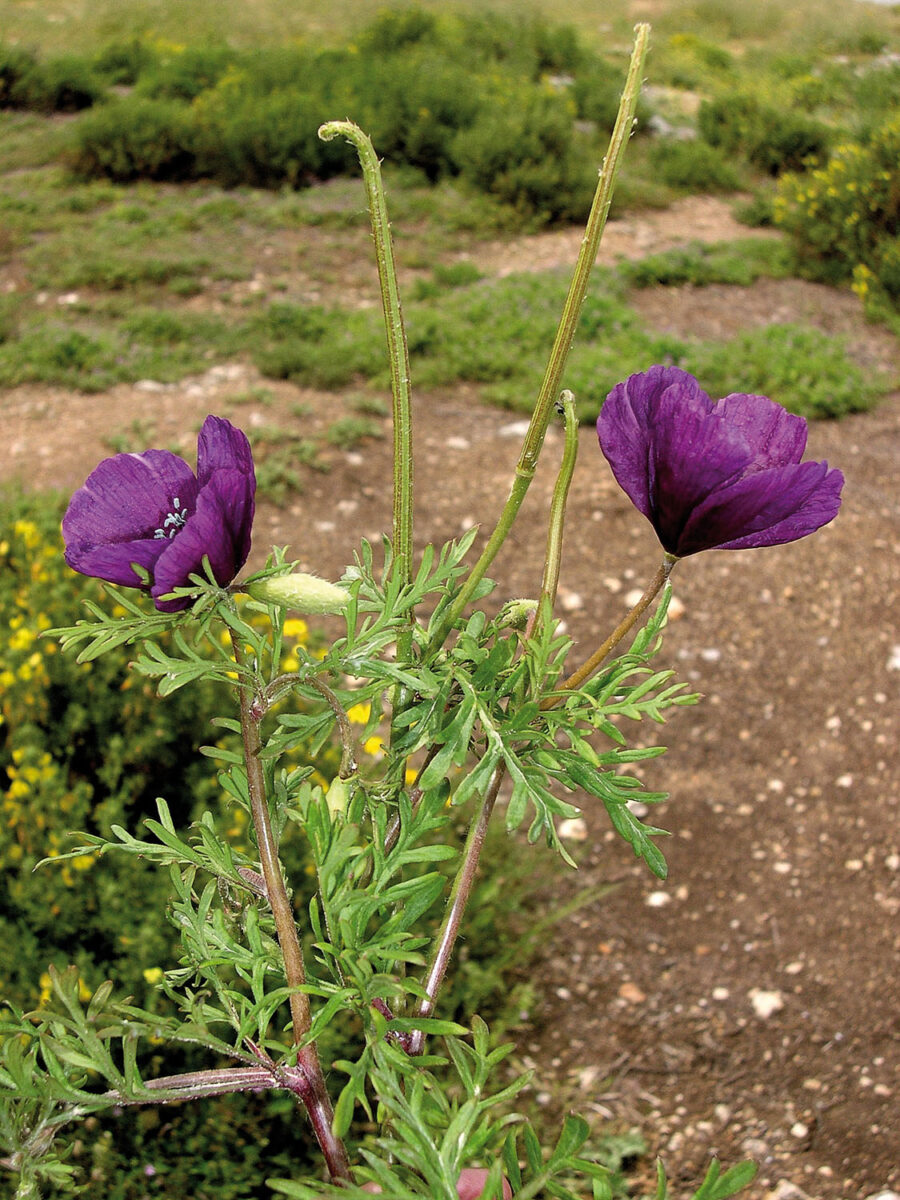 Tallos simples o más frecuentemente ramificado–ascendentes, angulosos, pelosos sobre todo en la base. Hojas 2–15 x 0,5–6(8) cm, las basales y caulinares inferiores pecioladas, pinnatífidas o 1–2–pinnatisectas, con segmentos lineares, aristados; las superiores subsésiles, 2–3–pinnatisectas, rara vez pinnatífidas, pelosas o glabras. Flores solitarias, actinomorfas, hermafroditas, sobre pedúnculos opuestos a las hojas. Sépalos 2, ovados, pelosos. Pétalos 4, de 1,5–3 x 1–2(2,2) cm, obovados o suborbiculares, violáceos. Estambres numerosos, con filamentos filiformes y anteras oblongas, pardas o violáceas. Ovario súpero. Cápsula 3,5–6(8) x 0,3–0,4 cm, cilíndrica, silicuiforme, dehiscente desde el ápice hasta la base por 4(6) valvas, generalmente cubierta de setas; estigmas 2(3), sésiles; semillas reniformes, alveolado–reticuladas