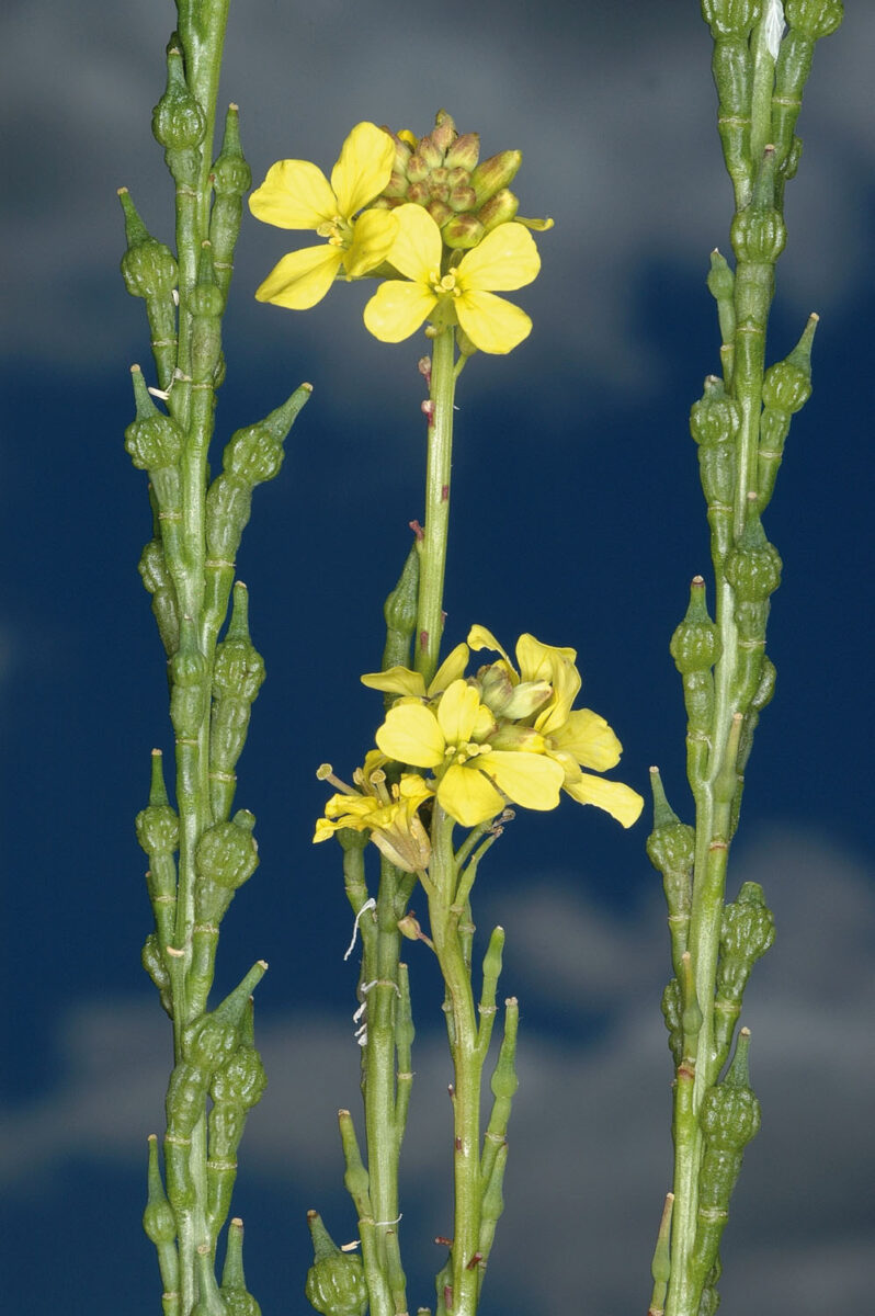 Tallo erecto, ramificado, híspido sobre todo en la parte inferior, con pelos simples. Hojas basales 3–30 x 0,8–13 cm, pecioladas, de simples, elípticas o espatuladas a lirado–pinnatífidas o pinnatisectas, con lóbulos alternos, dentados; las caulinares alternas, más pequeñas, poco divididas, de oblongas a lineares, cuneadas en la base, dentadas. Racimos ebracteados, multifloros, densos. Flores actinomorfas, hermafroditas, tetrámeras; sépalos 3–4(5) mm, erecto–patentes, glabros o algo pelosos, amarillentos; pétalos 6–8(10) x 3–4(6) mm, con uña más larga que los sépalos, amarillos; estambres 6, tetradínamos. Frutos en silícula, con 2 artejos; el inferior de 2–3(4) x 1–2 mm, persistente, adpreso, cilíndrico, glabrescente, con 0–2(4) semillas; el superior (2)2,5–3,5(4) x 2–3,5 mm, indehiscente, caedizo en la madurez, elipsoide o globoso, monospermo, de superficie acanalada o rugoso–tuberculada, terminado en estilo cónico o filiforme de 3–4 mm. Semillas lisas, pardas