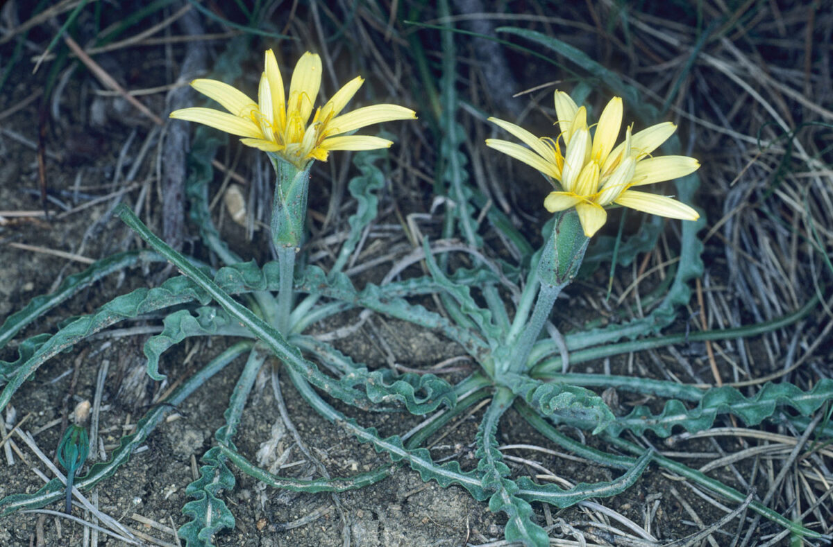Tallos simples, erectos, aracnoideo–tomentosos. Hojas 7–30(40) x 0,5–1(1,5) cm, todas basales, lineares o linear–lanceoladas, envainadoras, aracnoideo–tomentosas en la base y envés, con margen liso o crespo. Capítulos homógamos, terminales, solitarios; pedúnculos fuertemente engrosados en la antesis; involucro 30–40 x 8–14 mm en flor, con 3–4 filas de brácteas, tomentosas, de margen a veces purpúreo. Lígulas sobrepasando en 8–15 mm al involucro, de un amarillo pálido, con frecuencia purpúreas en el dorso y en los dientes; anteras amarillas. Aquenios 15–20 mm, subcilíndricos, algo costillados, los externos ligeramente arqueados y escábridos, los internos lisos, glabros. Vilano 12–15(20) mm, plumoso