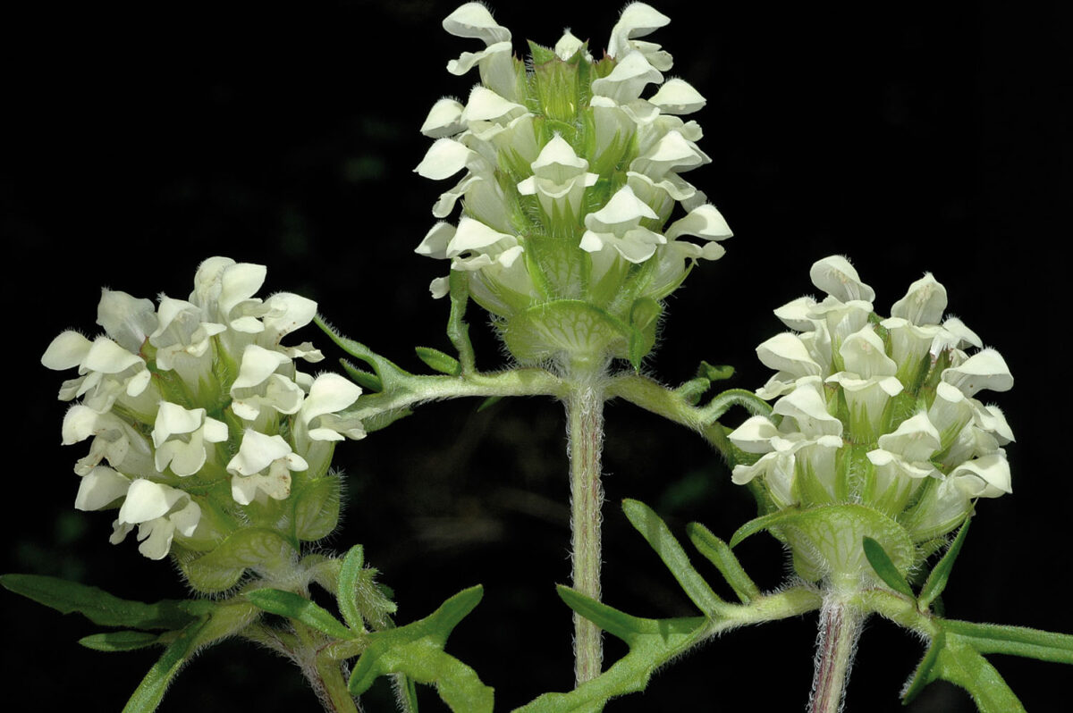 Erecta o ascendente, rizomatosa, estolonífera. Hojas 30–90 x 7–30 mm, ovadas o elípticas, las basales largamente pecioladas, las caulinares de lobuladas a pinnatífidas. Inflorescencia en espiga de verticilastros, terminal, densa; brácteas 6–10 x 12–15 mm, anchamente ovadas, pubescentes, las inferiores caudadas. Cáliz 8–10 mm, bilabiado, con 10 nervios; labio superior plano–convexo, con 3 dientes ovados, el inferior con 2 dientes lanceolados, aristados; tubo obcónico, verde, con margen purpúreo. Corola 15–17 mm, bilabiada, blanca o crema, a veces rosada o púrpura; labio superior convexo, entero, el inferior trilobulado