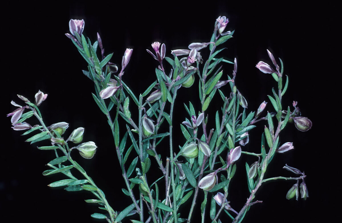 Algo leñosa en la base, con tallos pubescentes, ascendentes o suberectos. Hojas 1–23 x 0,5–4 mm, alternas, simples, subsésiles, revolutas, glabras o glabrescentes; las inferiores ovadas o elípticas, las superiores lanceoladas o linear–lanceoladas. Inflorescencias racemosas, pseudoaxilares. Flores zigomorfas, hermafroditas. Sépalos 5, libres; los 2 internos (alas) más grandes y petaloideos, de 4,5–6 x 1,8–2,5 mm (en la antesis), persistentes, acrescentes, obovados u oblanceolados, uninervados, verde–grisáceos, con ancho margen escarioso. Pétalos 3, de 4–7 mm, soldados en tubo, rosado–blanquecinos; el inferior (quilla) fimbriado. Estambres 8, monadelfos. Ovario súpero. Cápsula 6–9 x 4–7 mm, aplanada, obovada o suborbicular, con 2 valvas y ala marginal, sin carpóforo