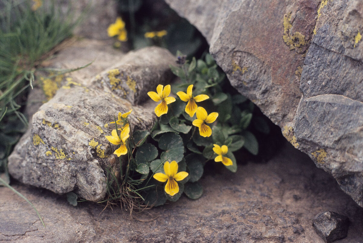 Rizoma corto, que emite una roseta foliar y tallos cortos, débiles, procumbentes. Hojas 1–3 x 1–3,8 cm, reniformes, cordadas en la base, de margen crenado, pelosas; estípulas hasta 5 mm, mucho más cortas que el pecíolo, ovadas o lanceoladas, enteras, glabras. Flores solitarias sobre largos pedúnculos bracteados, zigomorfas, hermafroditas, pentámeras, dialipétalas; sépalos 3,5–4,5 mm, estrechamente oblongos, agudos, con apéndice basal de c. 0,5 mm; pétalos amarillos, con estrías rojizas, los laterales dirigidos hacia arriba, el inferior 9–10 mm; espolón 1,5–3 x 1–1,5 mm. Ovario súpero, tricarpelar, unilocular. Cápsula 3,5–5,5 x 2–3 mm, ovoidea, aguda, glabra, sobre pedúnculo cabizbajo; semillas 2–2,2 mm, de color castaño claro
