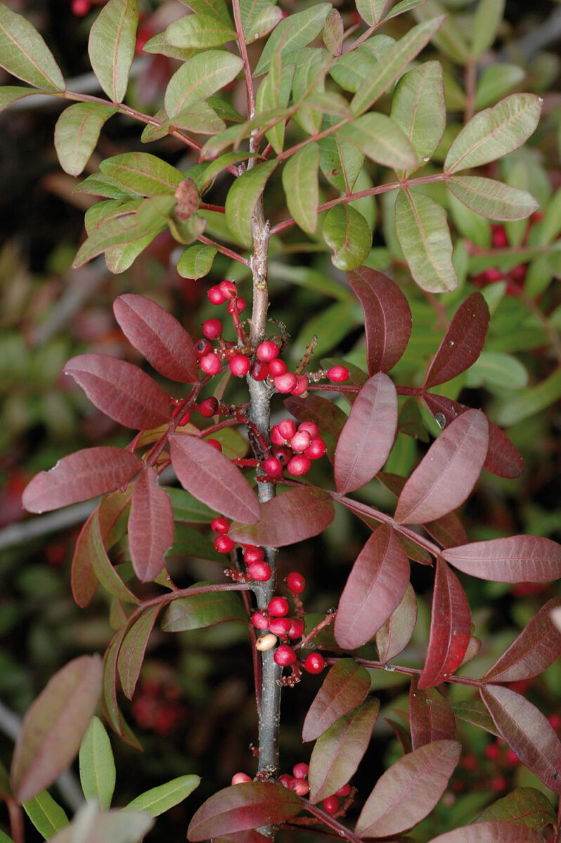 Perennifolia, dioica, glabra, resinosa, de corteza grisácea o rojiza. Hojas 3–11 cm, alternas, paripinnadas, de raquis alado; folíolos 2–12, de 1,5–4 cm, obovados, elípticos o lanceolados, enteros, coriáceos. Inflorescencias 2–5 cm, espiciformes, densas, axilares. Flores actinomorfas, apétalas, amarillentas o rojizas; las masculinas con 5 sépalos soldados de 1–1,2 mm y 5 estambres; las femeninas con 3–4 sépalos soldados de 1–1,2 mm y ovario súpero. Fruto drupa, de 3–6 mm de diámetro, globoso, rojizo al inicio, pardo o negro en la madurez