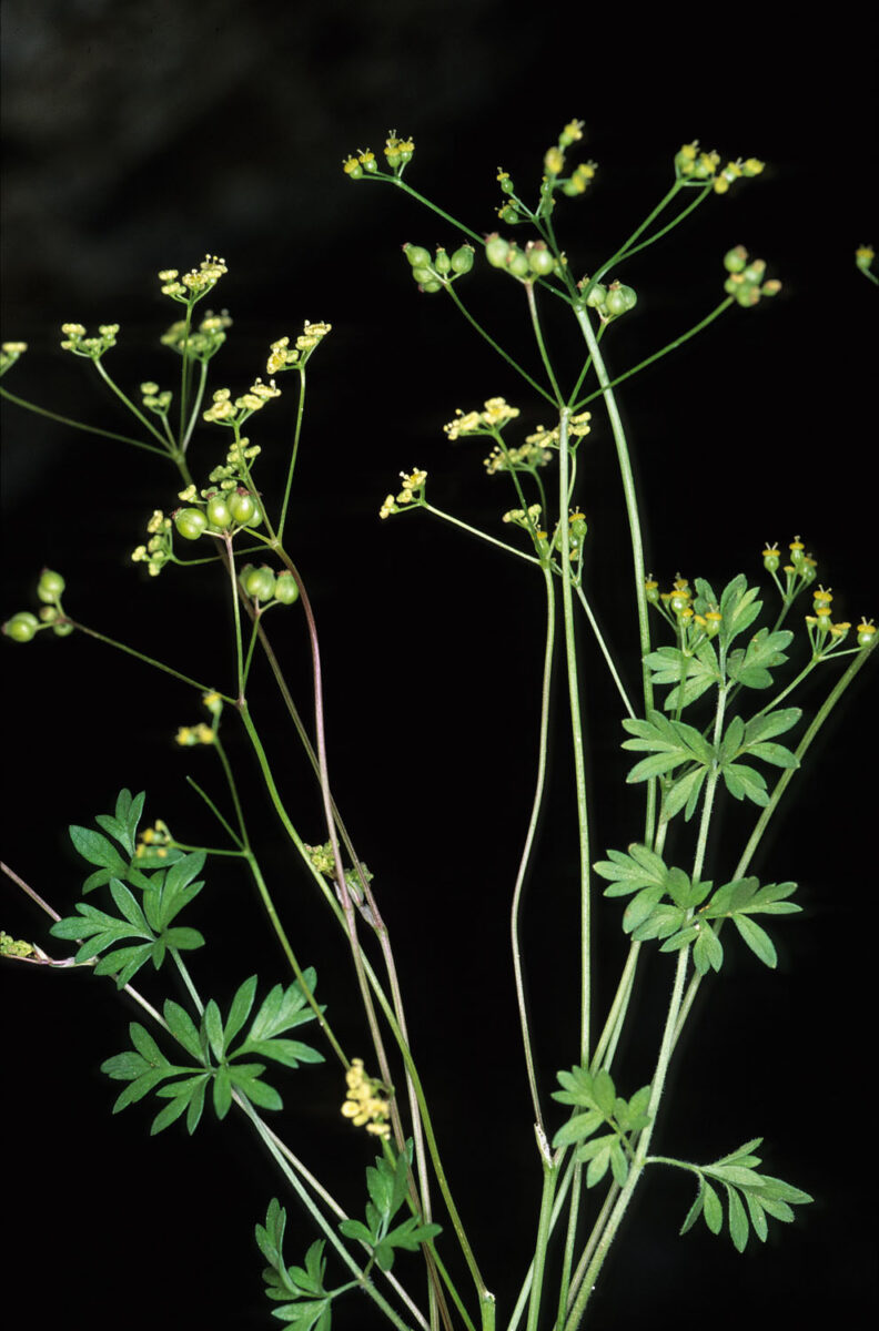 Herbáceas bienales, decumbentes o erectas. Tallos algo surcados, glabros (algunos pelos cortos en la base), rojizos en la fructificación, con abundantes restos foliares escamosos en la base. Hojas glabras o con pelos cortos; las basales de 5–9 cm, pecioladas, 2–3–pinnatisectas, con divisiones de último orden lanceoladas, agudas; las medias y superiores casi siempre reducidas a un corto limbo linear. Umbelas compuestas, con 4–6 radios, sin brácteas ni bractéolas. Flores actinomorfas, hermafroditas, pentámeras; pétalos 0,5–1,2 mm, ovados, emarginados, homogéneos, amarillos o de un blanco amarillento, a menudo manchados de violeta. Estilopodio cónico, aplanado; estilos c. 0,5 mm, reflejos en fruto. Frutos 2–3 mm, ovoideos, lisos, glabros. Mericarpos con costillas primarias poco marcadas, más claras que el resto del mericarpo