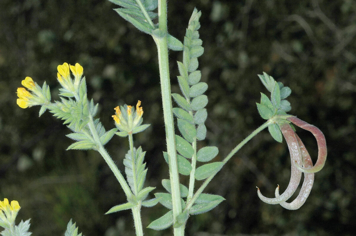 Tallos con indumento viloso y laxo. Hojas alternas, estipuladas, imparipinadas, con 8–18 pares de folíolos. Inflorescencias axilares, pedunculadas, umbeliformes o en glomérulo, con 1–5 flores y una bráctea foliácea que sobrepasa con frecuencia a las flores. Flores 5–7 mm, papilionadas, con bractéolas pequeñas, dentadas y con el ápice ocráceo. Cáliz (3)3,5–5,1 mm, subcilíndrico, bilabiado, piloso. Corola amarilla, glabra. Androceo diadelfo. Fruto 18–42 × 1,5–3,8 mm, estipitado, aplanado, poco contraído en los tabiques, recurvado, con superficie reticulada y 2–11 tabiques transversales; pico 3–15 mm, ensiforme, recurvado, de ordinario con el estilo persistente en la madurez. Semillas 1,7–1,8 × (2,4)3–3,3 mm, reniformes, lisas, pardas o amarillento–rojizas, sin estrofíolo