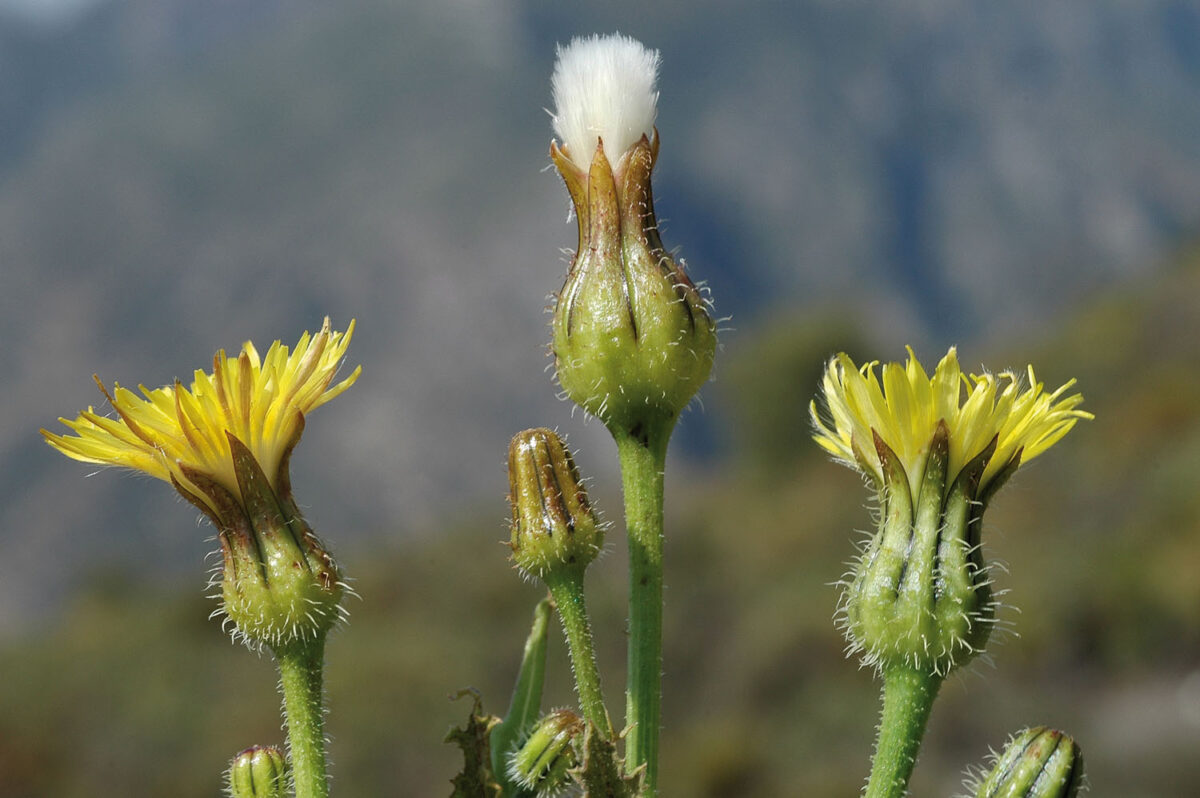 Anual, setoso–espinescente, áspera. Tallos ramificados o simples, setosos al menos en la mitad inferior. Hojas alternas, las inferiores obovadas, de dentadas a lirado–pinnatipartidas, pecioladas; las superiores lanceoladas, dentadas o pinnatífidas, sésiles, amplexicaules. Capítulos homógamos, terminales, solitarios, largamente pedunculados; involucro 15–25(27) mm, esparcidamente espinuloso–setoso, con (7)8 brácteas en 2 filas, soldadas en el tercio inferior y simulando una sola fila, lanceoladas, las internas con margen escarioso ancho. Flores liguladas, vilosas, con limbo de 7–9 mm, amarillo. Aquenios con cuerpo de 4–5 mm, comprimido lateralmente, con 4–6 costillas tuberculadas, y pico de 8–12 mm, marcadamente bulboso en la base, escábrido–espinuloso; vilano 9–13 mm, de pelos plumosos, blancos